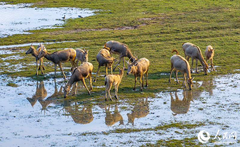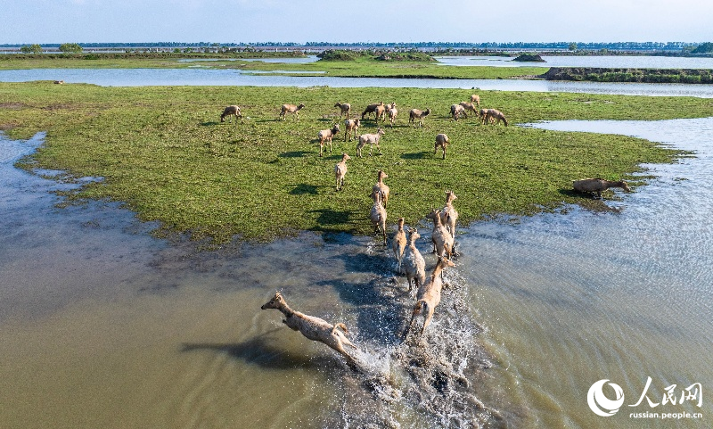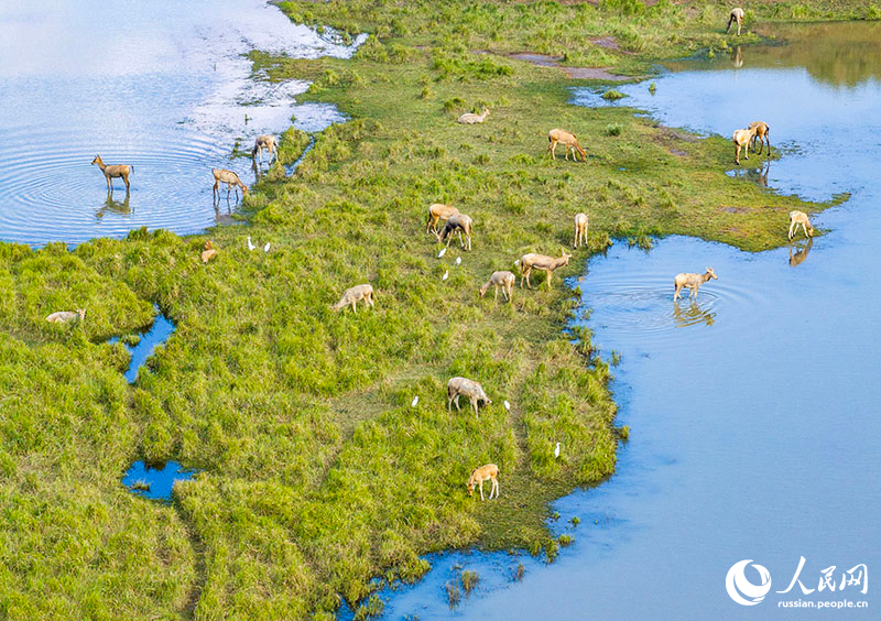 24 сентября, «Жэньминь жибао» онлайн -- В последние несколько лет улучшается экологическая обстановка в заповеднике «Елудан» в городе Яньчэн провинции Цзянсу на берегу Желтого моря. Численность популяции оленей милу /олень Давида/ сохраняет здоровый и стабильный рост. В богатых водно-болотных угодьях животные добывают пищу и «наслаждаются» средой обитания.
