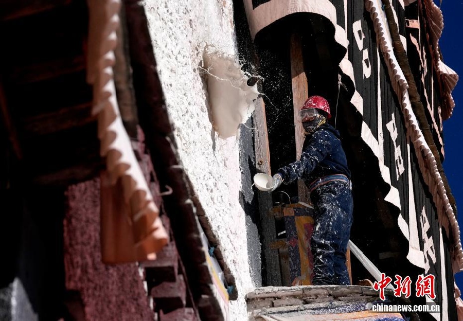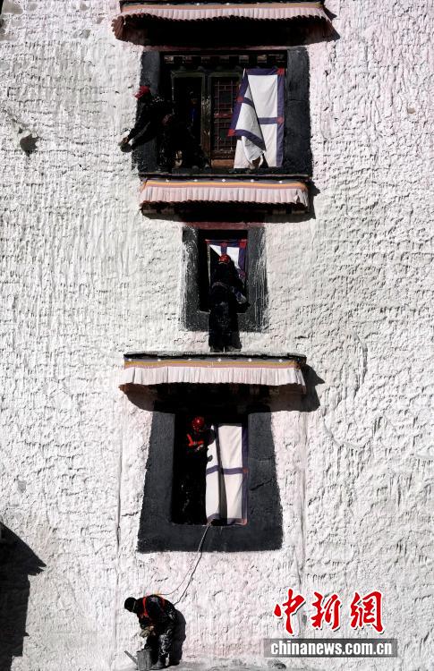 22 октября, «Жэньминь жибао» онлайн -- 22 октября в Лхасе Сицзанского автономного района на юго-западе Китая началась комплексная покраска дворца Потала, объекта Всемирного наследия ЮНЕСКО. Работники администрации дворца и местные жители приняли участие в ежегодных работах по обновлению фасада знаменитого памятника.-0-
