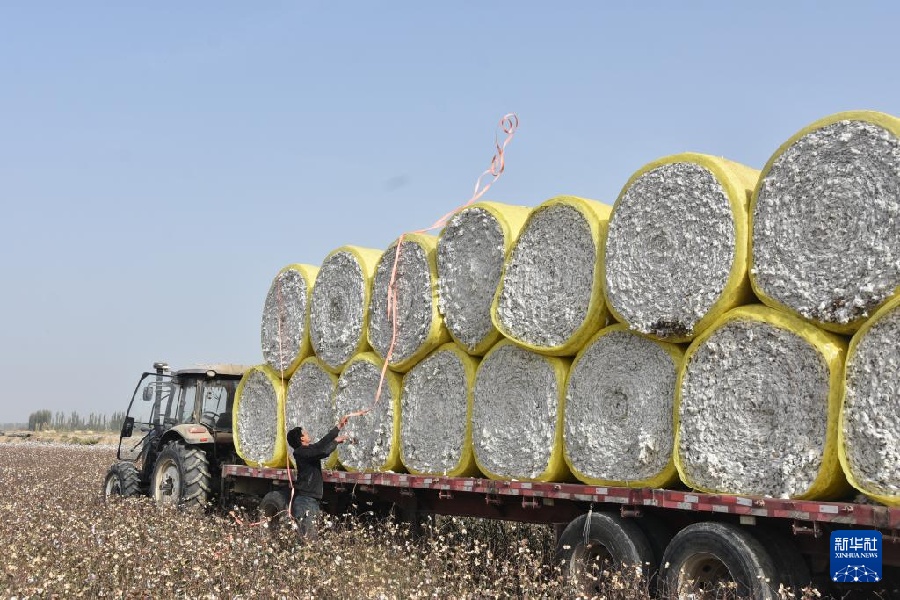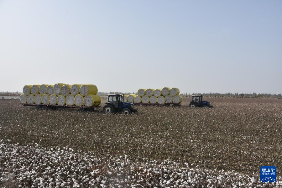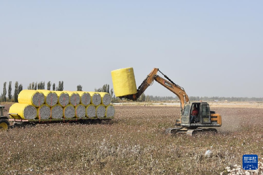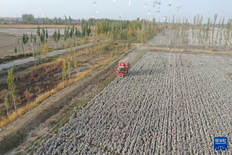 22 октября, «Жэньминь жибао» онлайн -- На днях на хлопковых полях площадью 1,87 млн му (около 124,7 тыс. га) в уезде Шаяр Синьцзян-Уйгурского автономного района наступил пик сбора урожая. Здесь белоснежное хлопковое море простирается до самого горизонта. Несколько крупных хлопкоуборочных комбайнов снуют туда-сюда, они собирают, прессуют в тюки и подготавливают к отправке пушистый урожай.-0-