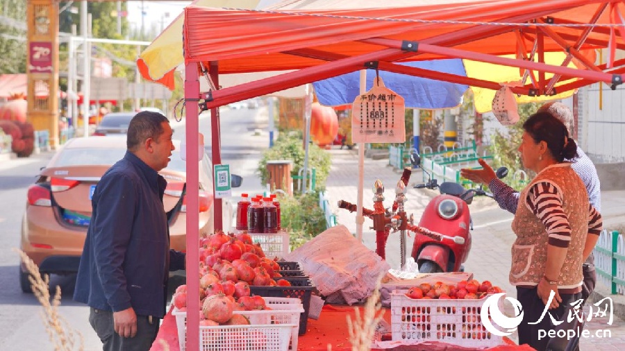24 октября, «Жэньминь жибао» онлайн -- Золотой осенью на южной окраине пустыни Такла-Макан, в деревне Шилюцзы Синьцзян-Уйгурского автономного района /Северо-Западный Китай/, созревают гранаты.