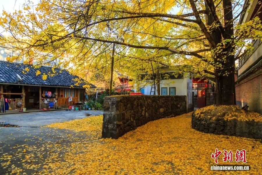 24 октября, «Жэньминь жибао» онлайн -- Каждая осень в деревне Иньсин провинции Юньнань /Юго-Западный Китай/ превращается в «золотую сказку». Ежегодно тысячи деревьев гинкго покрывают дома и улицы золотыми листьями, сообщает сайт «Хуаньцюван».