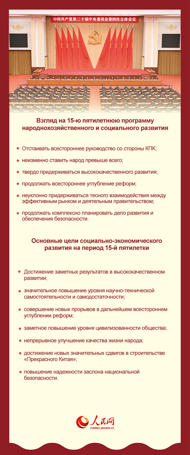 4-й пленум Центрального комитета Коммунистической партии Китая 20-го созыва закрылся 23 октября в Пекине. На пленуме были рассмотрены и приняты «Предложения ЦК КПК по разработке 15-й пятилетней программы народнохозяйственного и социального развития».