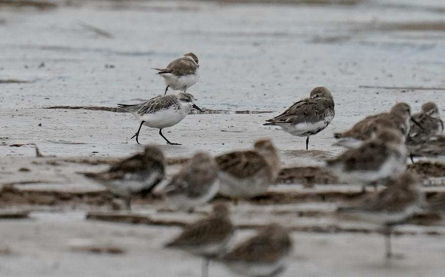 31 августа 2023 года, кулик-лопатень /крупным планом/ ищет пропитание на отмели водно-болотных угодий Тяоцзыни /пров. Цзянсу, Восточный Китай/. /Фото: Синьхуа/
