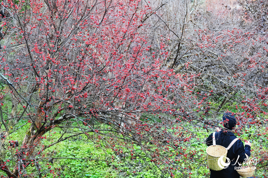 2 декабря, «Жэньминь жибао» онлайн -- В начале зимы в горах Фуню уезда Сися провинции Хэнань /Центральный Китай/ начинается сезон урожая кизила, сообщает сайт «Хуаньцюван».
