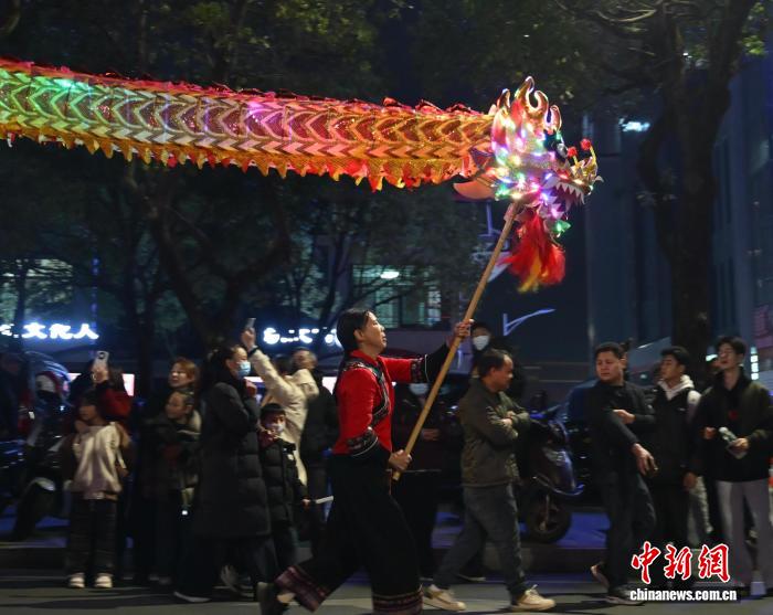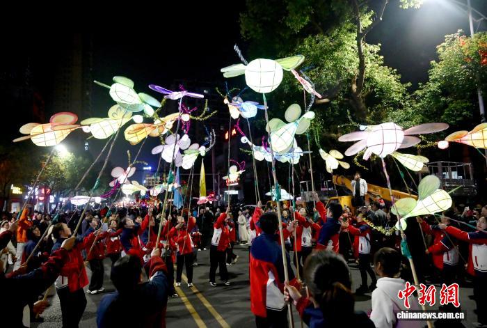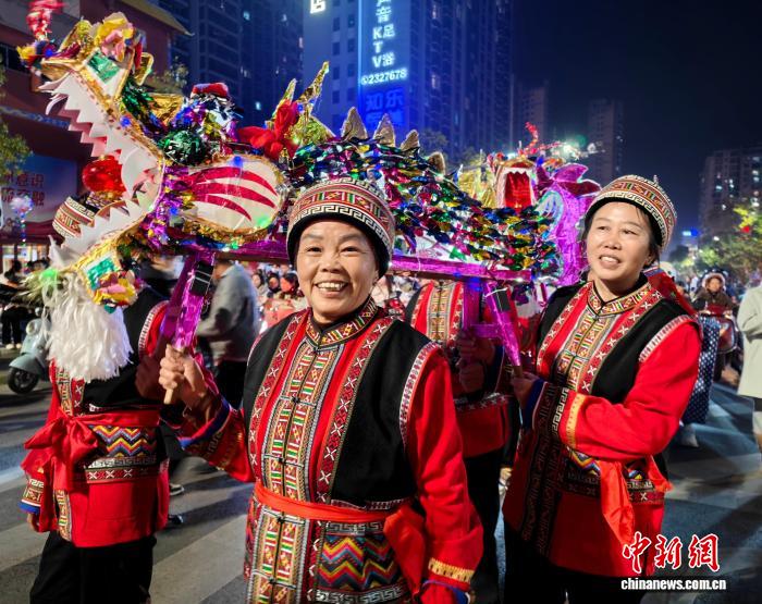 4 декабря, «Жэньминь жибао» онлайн -- Вечером 3 декабря в Цзянхуа-Яоском автономном уезде провинции Хунань /Центральный Китай/ состоялся фестиваль драконов и львов. 70 команд представили разнообразные традиционные яоские фонари в виде драконов в честь 70-летия основания уезда.-0-
