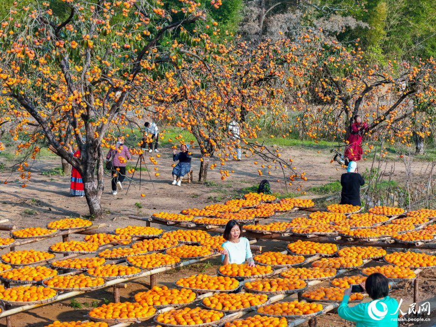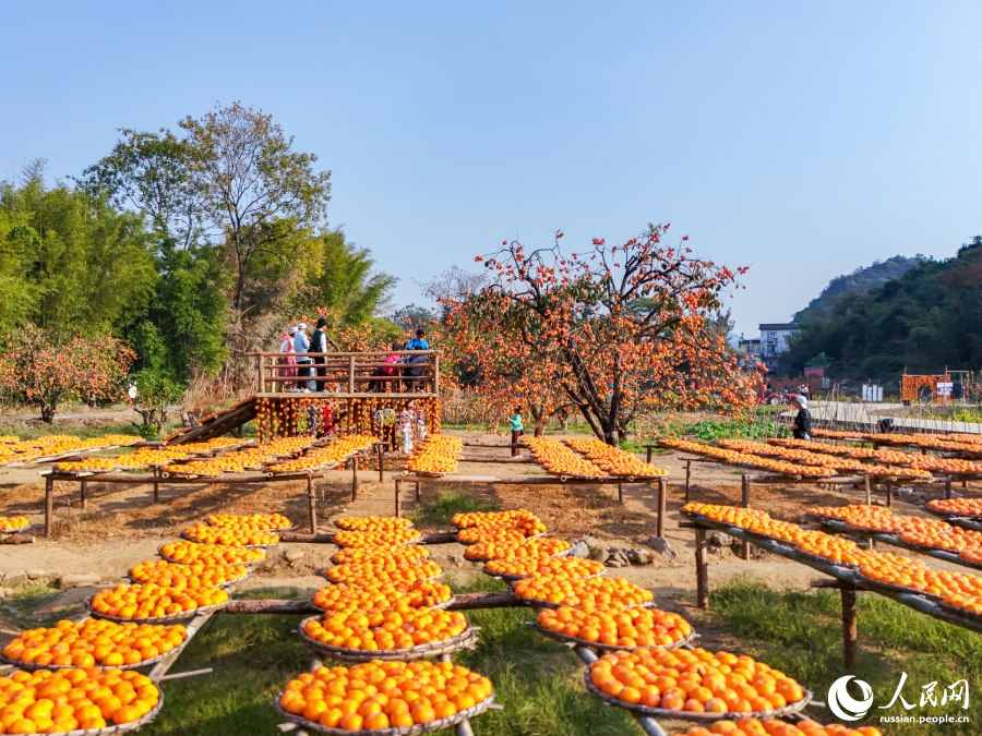 11 декабря, «Жэньминь жибао» онлайн -- Зимние месяцы – золотая пора для посещения бескрайних плантаций хурмы в деревне Хунъянь Гунчэн-Яоского автономного уезда /Гуанси-Чжуанский автономный район, Юго-Западный Китай/. В последние годы уезд сделал сорт хурмы «юэши» своим символом, искусно соединив сельское хозяйство с туризмом. Эта стратегия не только повышает благосостояние местных жителей, но и служит мощным двигателем возрождения сельской местности.