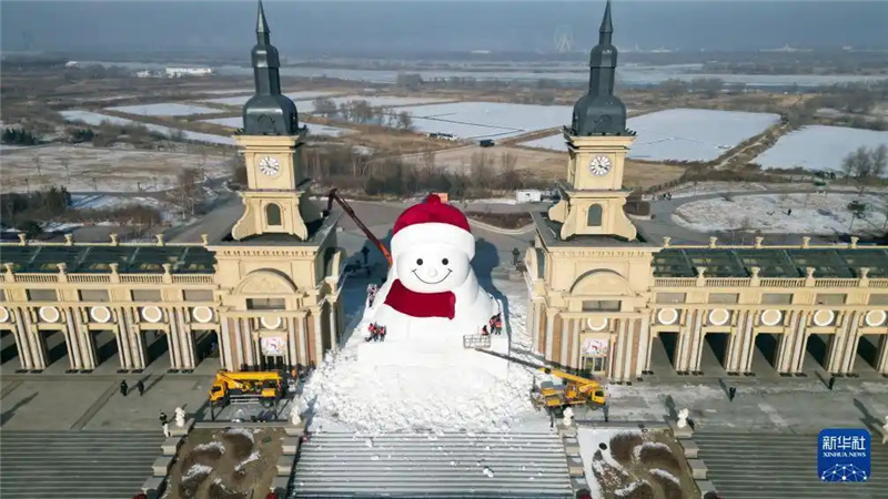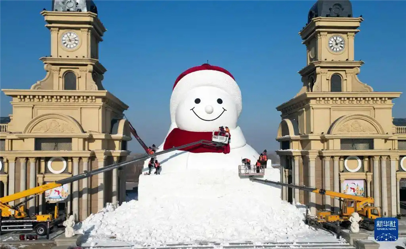 15 декабря, «Жэньминь жибао» онлайн -- 14 декабря в Харбине /провинция Хэйлунцзян, Северо-Восточный Китай/ была завершена установка головы главного городского снеговика. Он строится в музыкальном парке Цюньли и уже в процессе возведения привлекает туристов, которые делают первые фотографии.