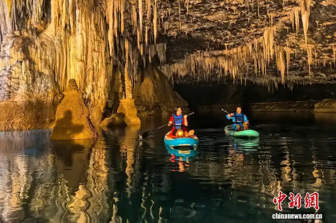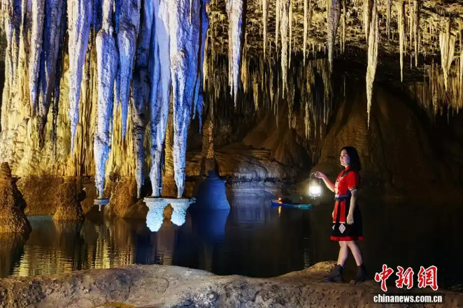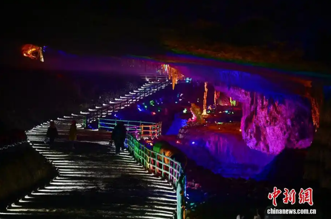 18 декабря, «Жэньминь жибао» онлайн -- В одной из естественных пещер в городе Эньши провинции Хубэй сталактиты свисают словно мечи, ущелье – глубокое и таинственное, а речная долина – спокойная и безмятежная. Посетители прогуливались по пещере, как по таинственному месту.