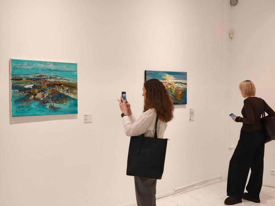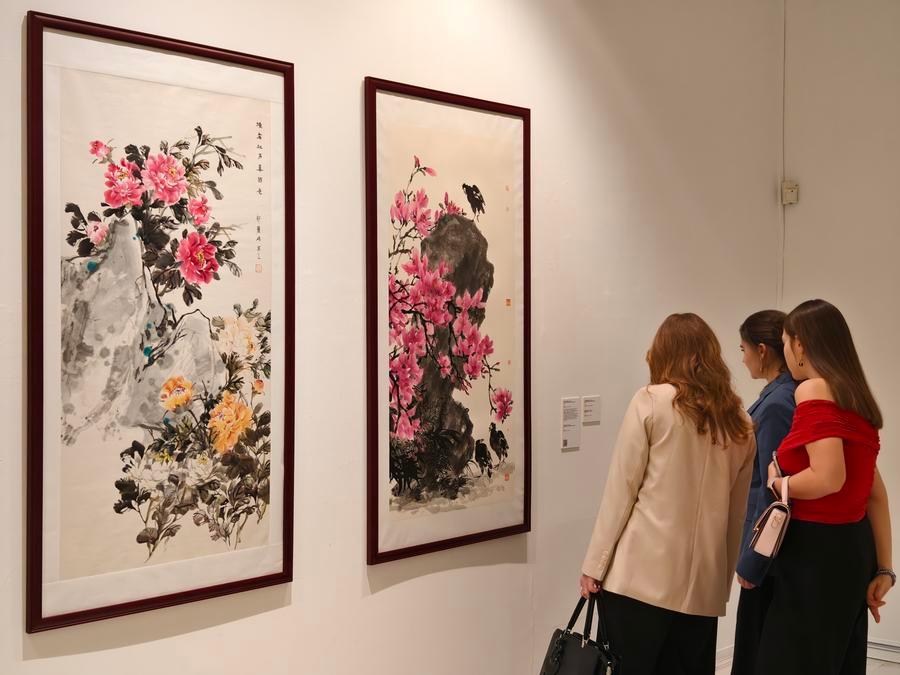 22 декабря, Москва. Посетители на церемонии открытия выставки "Время и пространство" китайского художника Му Кэ в Московском музее современного искусства. /Фото: Синьхуа/