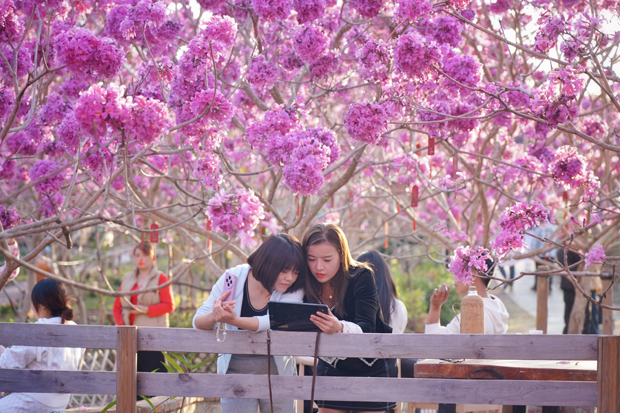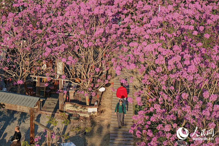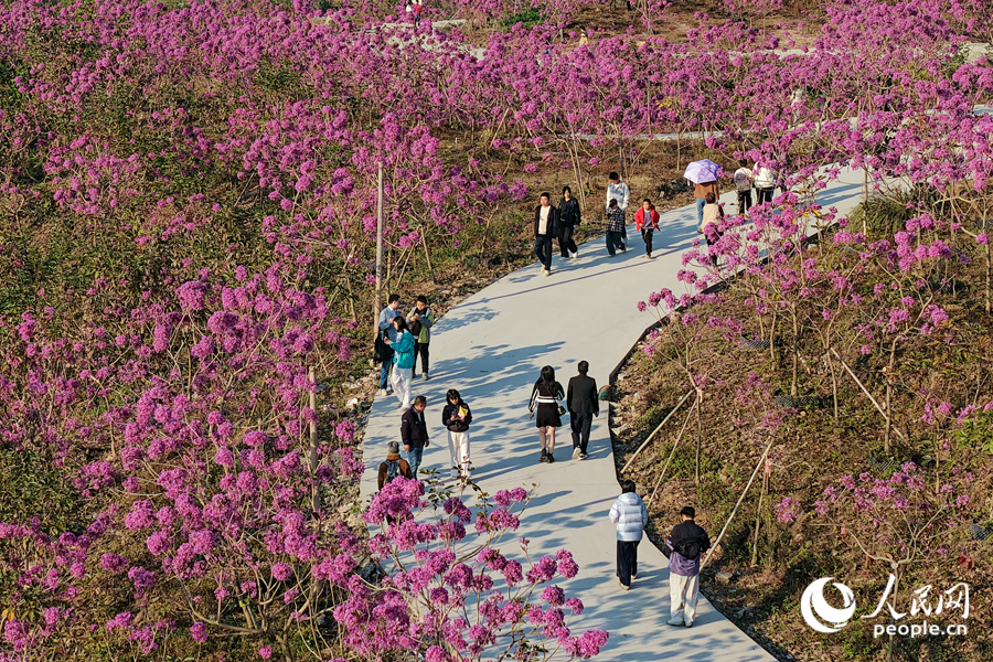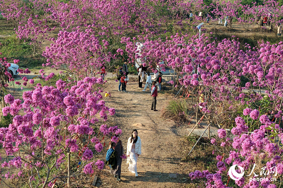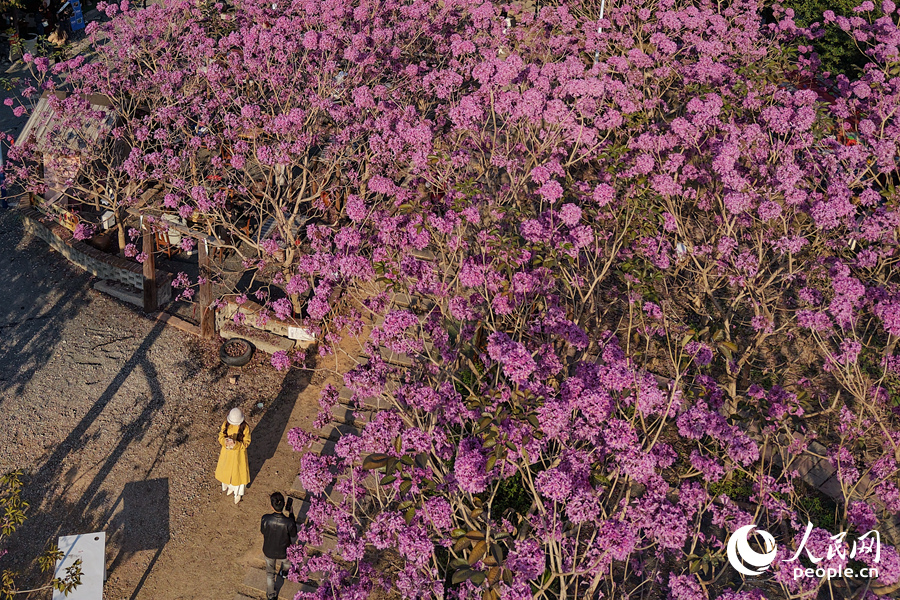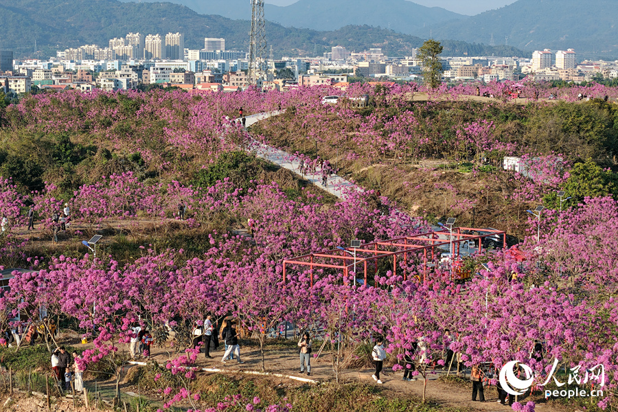 8 января, «Жэньминь жибао» онлайн -- С наступлением Нового года в деревне Сиси района Цзимэй города Сямэнь /провинция Фуцзянь, Юго-Восточный Китай/ расцвели тысячи фиолетовых табебуй /Handroanthus impetiginosus/. На площади 15 га более 7 тысяч деревьев покрыли склоны холмов пышными соцветиями. Об этом сообщает сайт «Хуаньцюван».