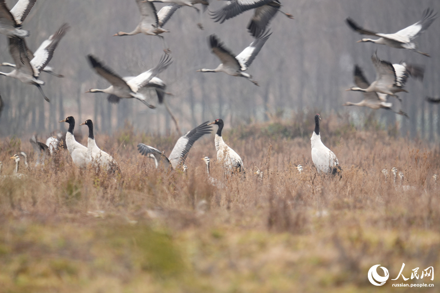 13 января, «Жэньминь жибао» онлайн -- В заповеднике Цаохай, расположенном в провинции Гуйчжоу на юго-западе Китая, зафиксировано рекордное количество зимующих черношейных журавлей – 2 842 особи. Это самый высокий показатель за всю историю наблюдений, сообщает сайт «Хуаньцюван».