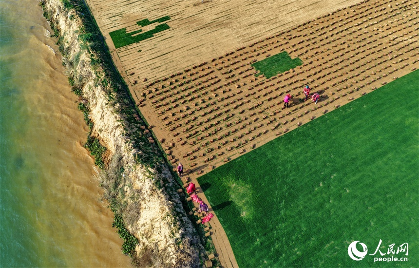 20 января, «Жэньминь жибао» онлайн -- В последние годы город Фэнчэн (провинция Цзянси, Восточный Китай) занимается экологическим восстановлением береговых линий рек. На песчаных отмелях здесь начали культивировать травяной покров. Этот метод не только закрепляет пески и укрепляет дамбы, но и создает основу для устойчивого бизнеса. Готовую траву используют для городского озеленения, рекультивации земель на бывших горных выработках и восстановления пустошей. Такой подход обеспечивает двойной положительный эффект – восстанавливает экологию и приносит экономическую выгоду.-0-