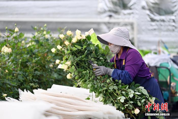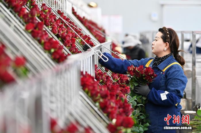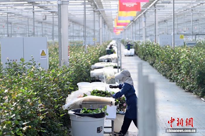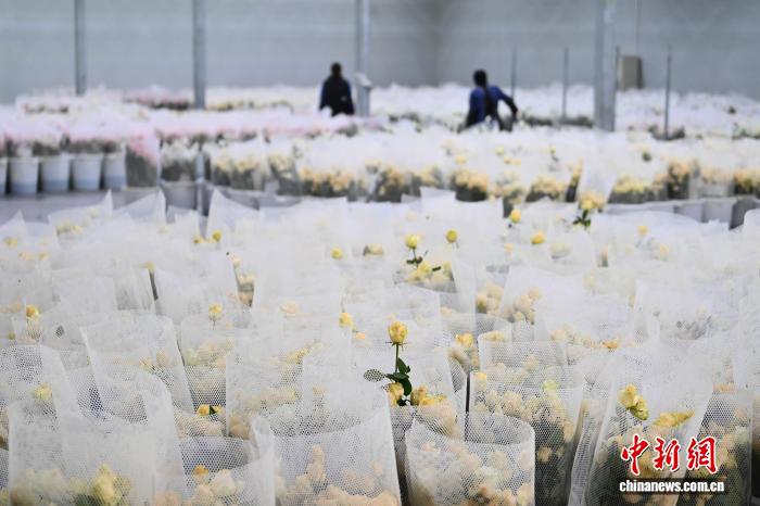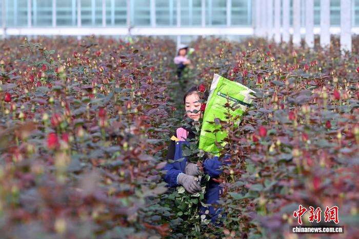 23 января, «Жэньминь жибао» онлайн -- С приближением праздника Весны база выращивания роз «Международный цветочный порт Инун» в городе Линься /провинция Ганьсу, Северо-Западный Китай/ переживает пик продаж срезанных роз.