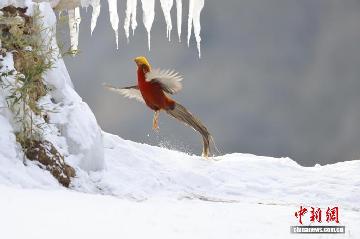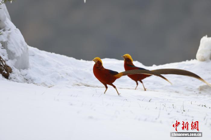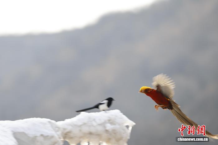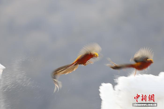 28 января, «Жэньминь жибао» онлайн -- Недавно в национальном лесном парке Ганьшань города Саньмэнься провинции Хэнань /Центральный Китай/ защитники дикой природы запечатлели золотых фазанов, ищущих корм и резвящихся на льду. В Китае золотой фазан находится под государственной охраной второй категории. Яркое оперение и грациозные движения этих редких птиц на ледяной поверхности – это поистине завораживающее зрелище. Об этом сообщает сайт «Хуаньцюван».-0-