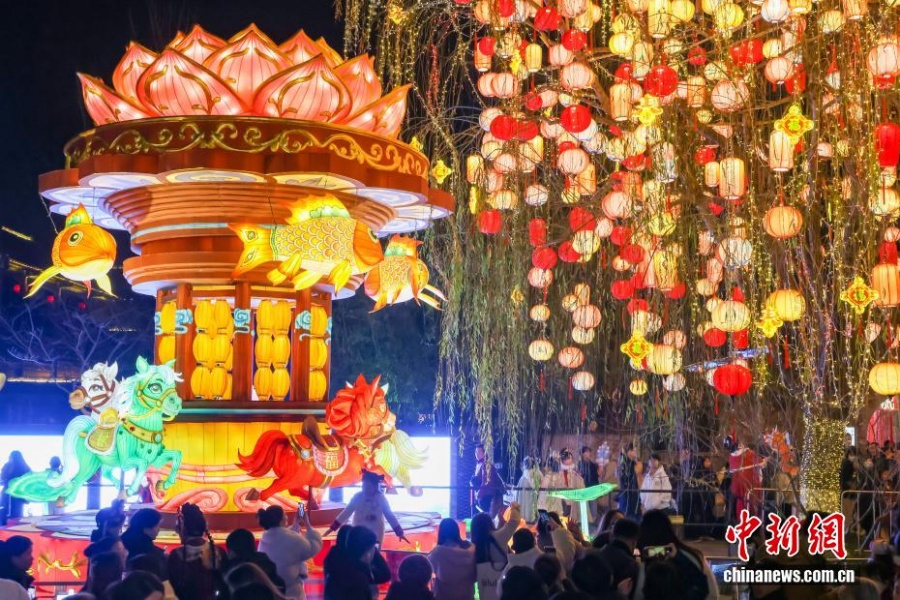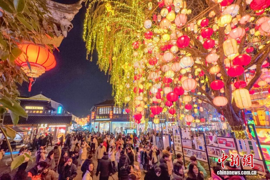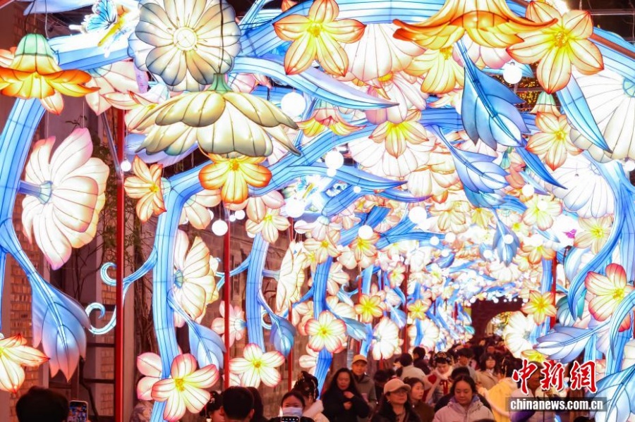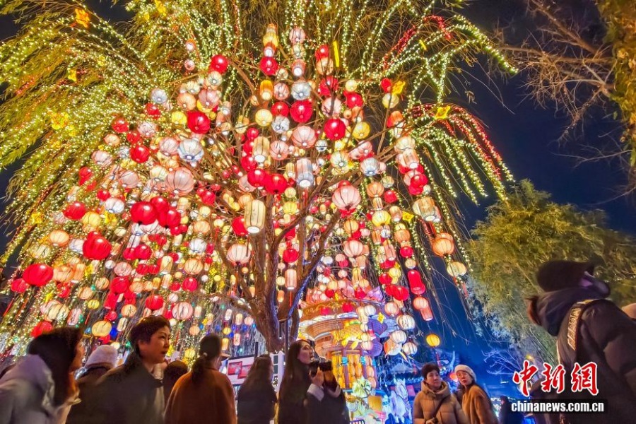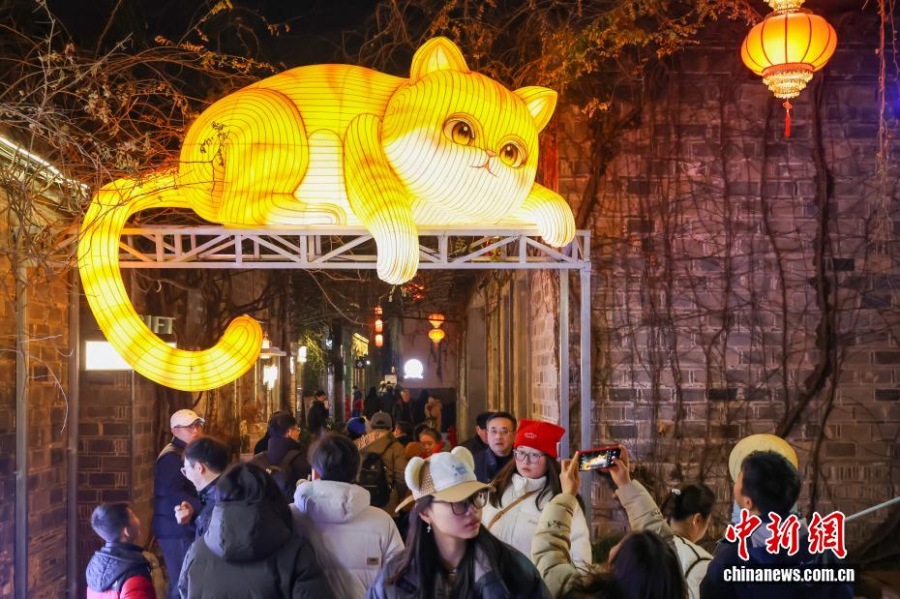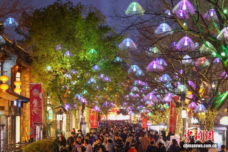 30 января, «Жэньминь жибао» онлайн -- По мере приближения праздника Весны улицы и переулки южной части города Нанкин /провинция Цзянсу, Восточный Китай/ засияли праздничными огнями. Крупные световые инсталляции и разноцветные фонари самых разных форм создают торжественную атмосферу. Об этом сообщает сайт «Хуаньцюван».-0-
