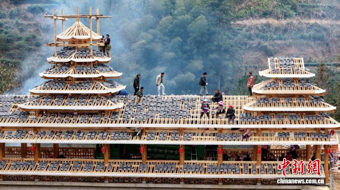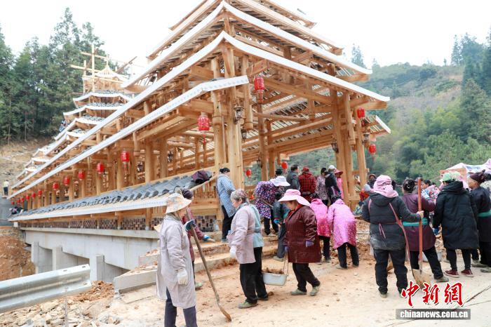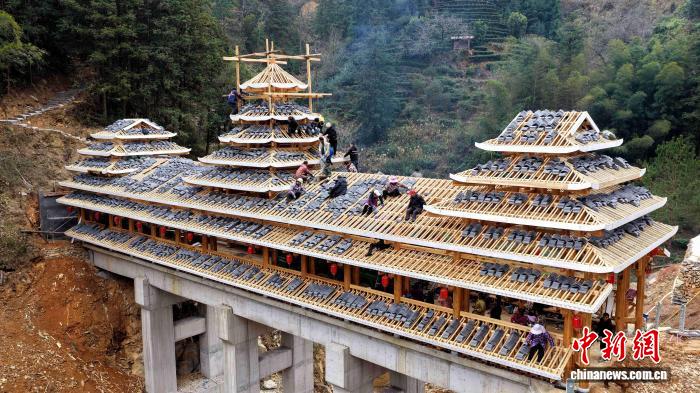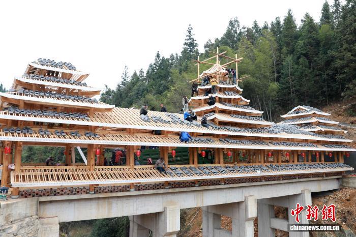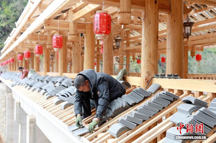 4 февраля, «Жэньминь жибао» онлайн -- В деревне Яцзи Саньцзян-Дунского автономного уезда /Гуанси-Чжуанский автономный район, Южный Китай/ кипит работа: местные жители укладывают черепицу и расчищают территорию вокруг нового крытого моста. Все стараются успеть завершить строительство к наступающему празднику Весны.