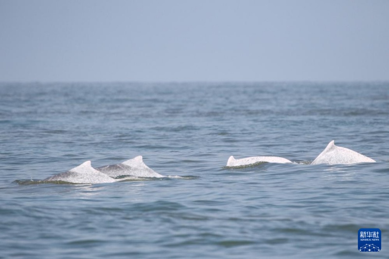 9 февраля, «Жэньминь жибао» онлайн -- На днях китайская научно-исследовательская команда наблюдала за большой группой китайских белых дельфинов в водах к юго-западу от острова Хайнань, их численность составляла от 30 до 50 особей.