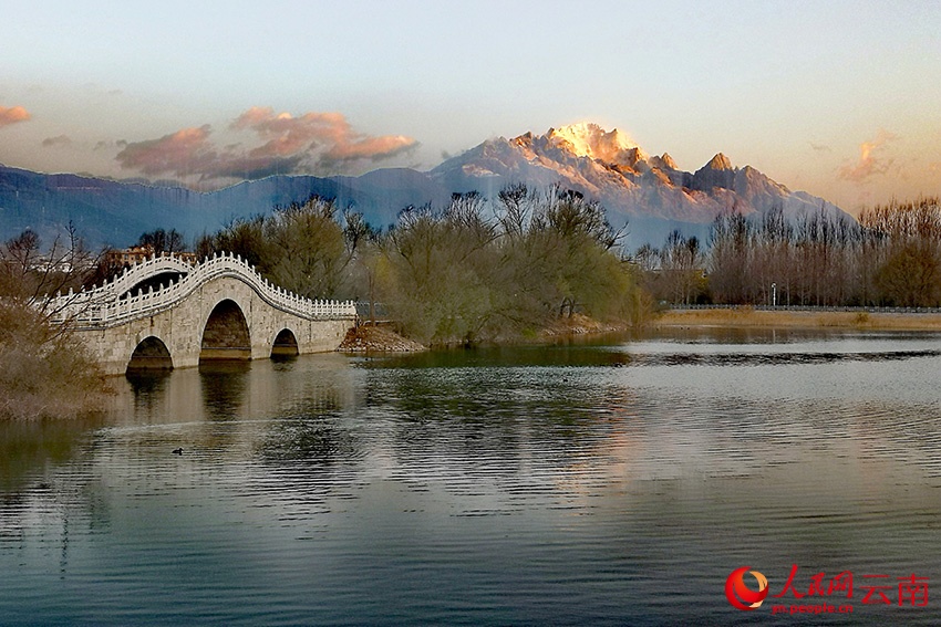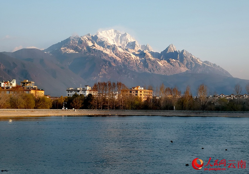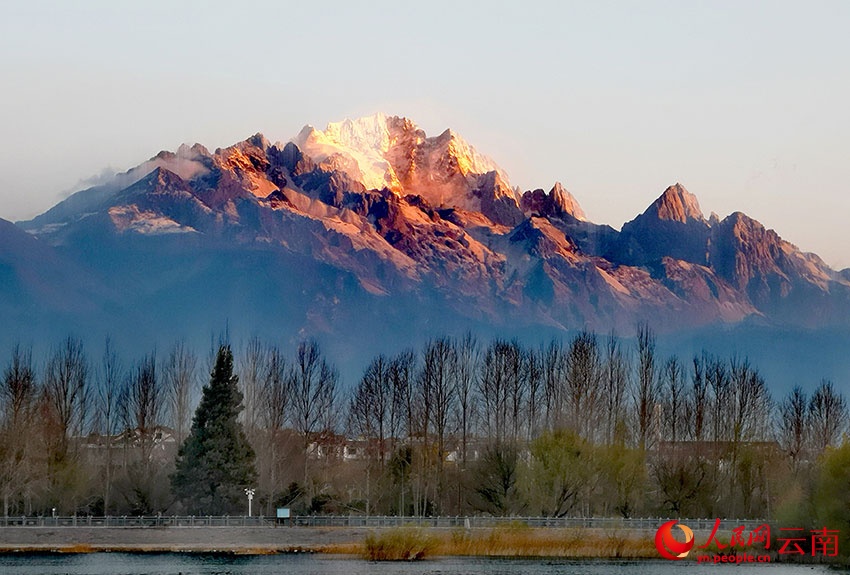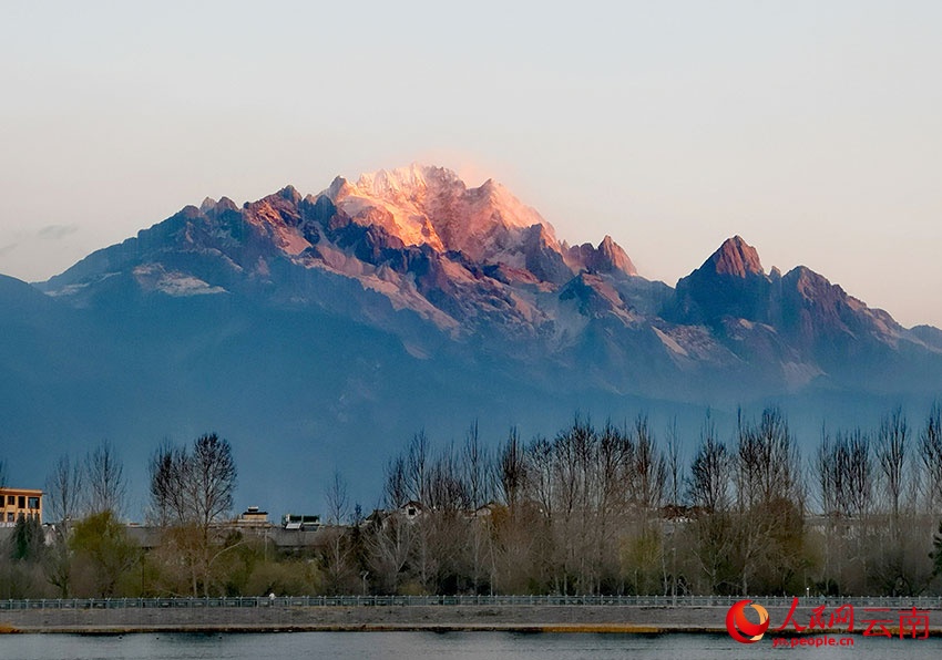 26 февраля, «Жэньминь жибао» онлайн -- Недавно на снежной горе Юйлун в городе Лицзян провинции Юньнань /Юго-Западный Китай/ выпал первый в этом году снег. Утреннее солнце осветило заснеженную вершину, мгновенно окрасив ее в золотистый цвет. Снежный пик в сочетании с нежно-голубым небом и прозрачным озером создал живописную весеннюю картину, полную жизни и энергии. Об этом сообщает сайт «Хуаньцюван».-0-