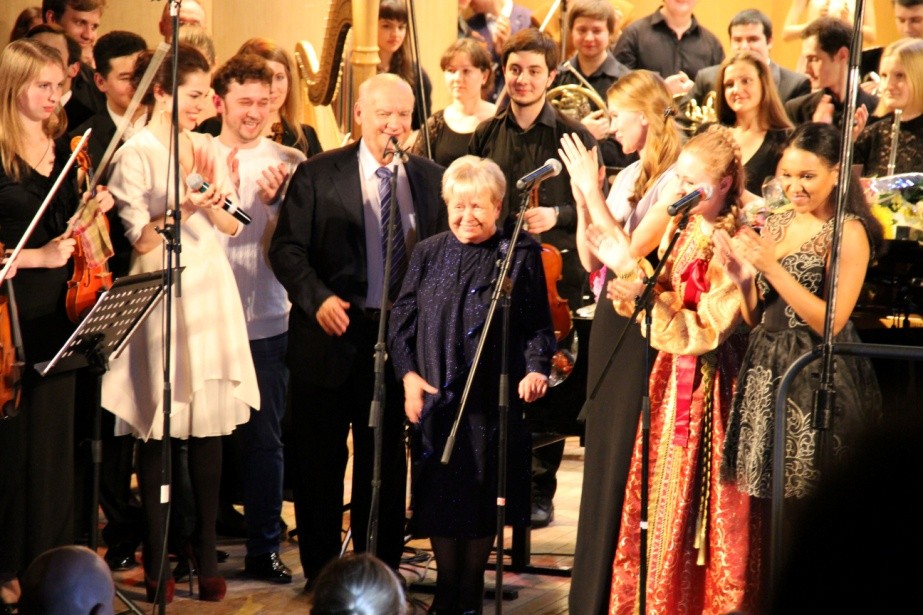 Концерт сопровождал Симфонический оркестр Российской академии музыки имени Гнесиных под управлением дирижёра Большого театра Александра Соловьёва. Пахмутова лично вышла на сцену, чтобы аккомпанировать на рояле.