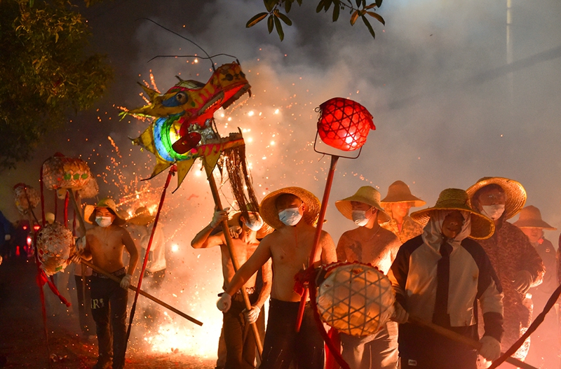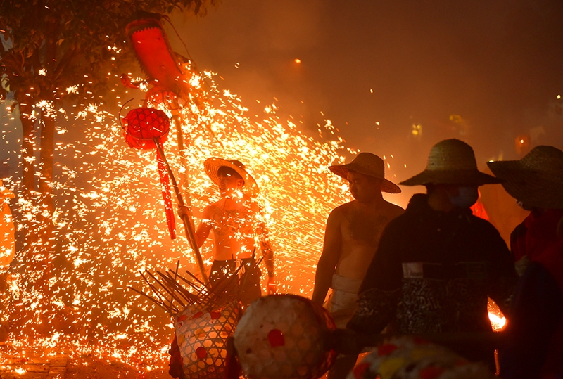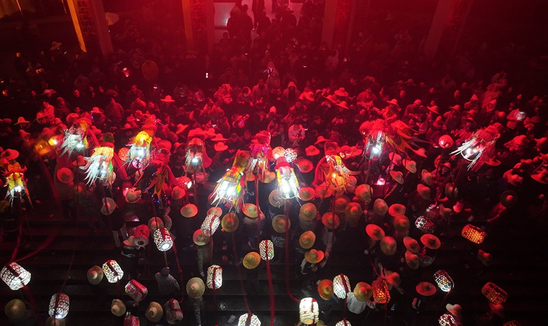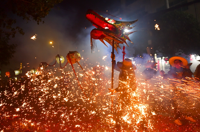 2 марта, «Жэньминь жибао» онлайн -- На днях в Сунтао-Мяоском автономном уезде провинции Гуйчжоу /Юго-Западный Китай/ прошел традиционный обряд «взрывания дракона» /«чжалун»/. Исполнители обмотали бамбуковые шесты петардами и подожгли их прямо у драконьих фигур, а другие участники осыпали драконов снопами искр из специальных трубок. Так местные жители встречают Новый год, вознося молитвы о процветании и благополучии. Грохот петард и сверкание искр слились в незабываемое зрелище, собравшее свыше десяти тысяч зрителей. Об этом сообщает сайт «Хуаньцюван».-0-