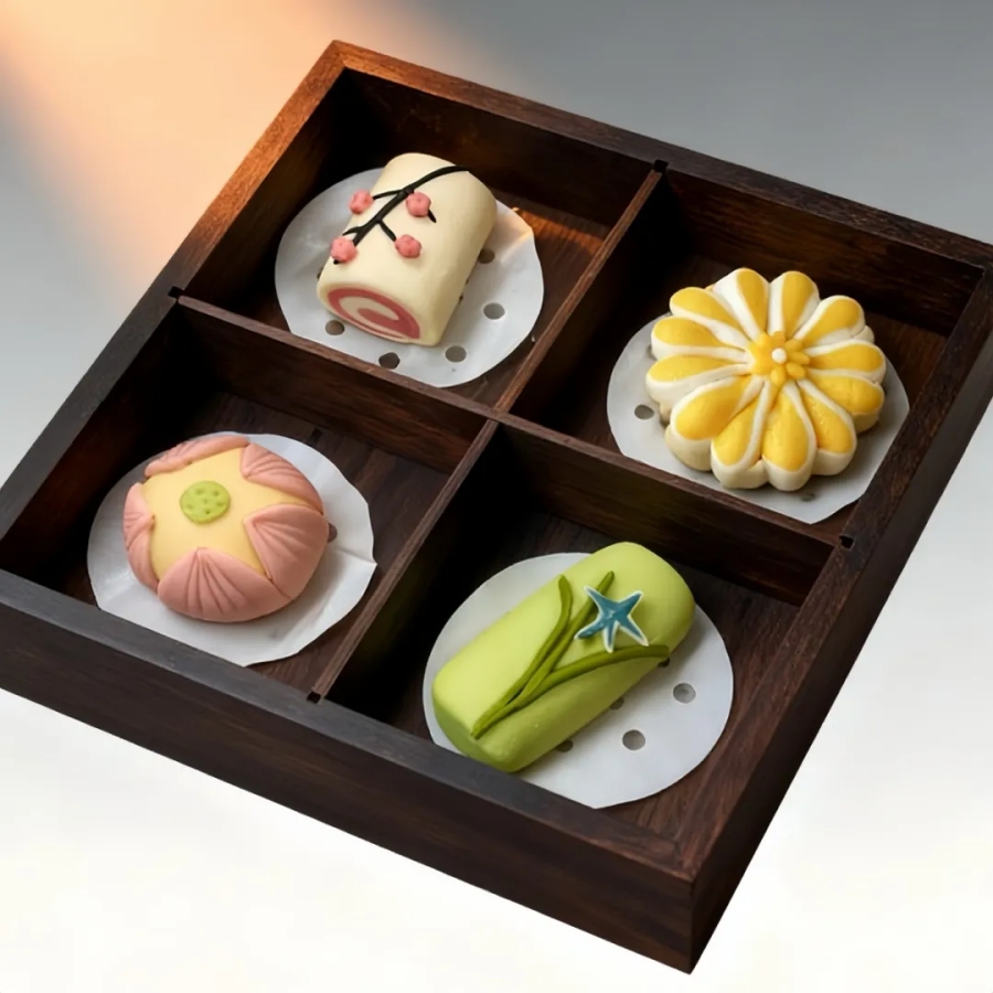 Внешне изделия поражают своей красотой: образы весенней орхидеи, летнего лотоса, осенней хризантемы и зимней сливы воссозданы вручную методами лепки и формовки, заимствованными из искусства изготовления изысканных пирожных. Каждая булочка воплощает эстетику традиционного китайского искусства.
