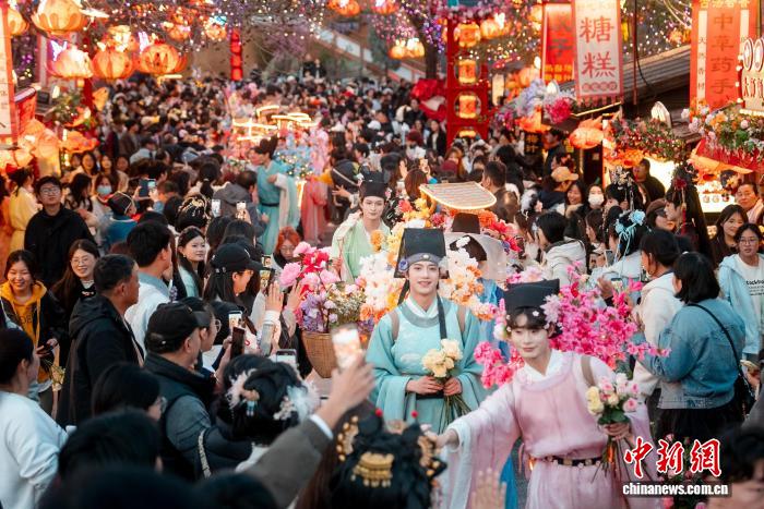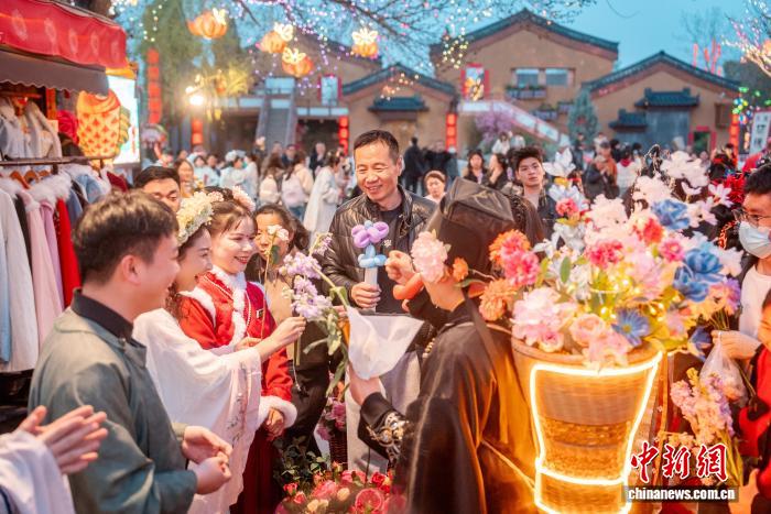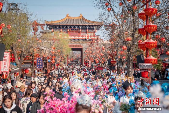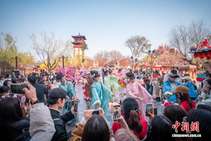 23 марта, «Жэньминь жибао» онлайн -- На днях в культурно-историческом парке «Цинминшанхэюань» в городе Кайфэн /провинция Хэнань, Центральный Китай/ стартовал Фестиваль цветов. Артисты в костюмах эпохи Сун прошли по парку праздничным шествием, общаясь с гостями и преподнося им цветы. Это зрелищное мероприятие привлекло множество туристов.