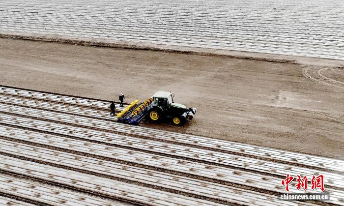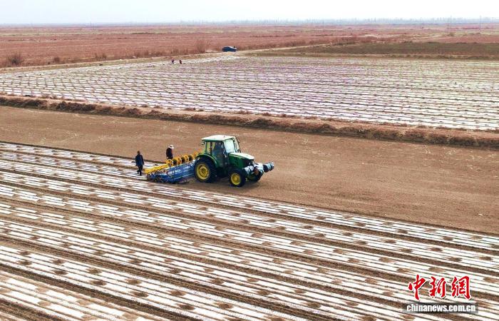 2 апреля, «Жэньминь жибао» онлайн -- В настоящее время в посёлках уезда Шачэ /Синьцзян-Уйгурский автономный район, Северо-Западный Китай/ хлопчатник постепенно вступает в ключевой этап посевной. На полях снуёт техника, которая выполняет целый ряд операций: прокладку капельных лент, укрытие почвы плёнкой, проделывание отверстий и посев.
