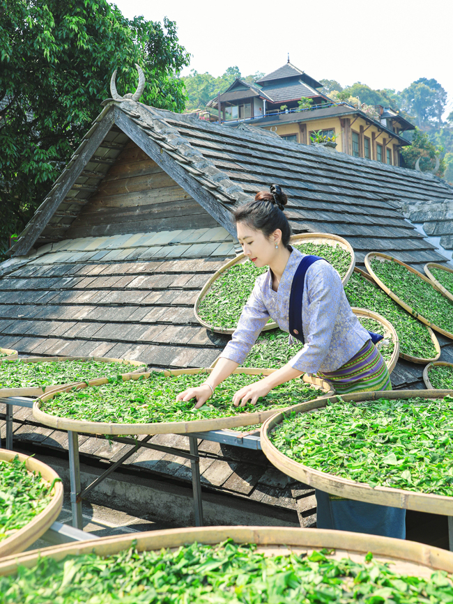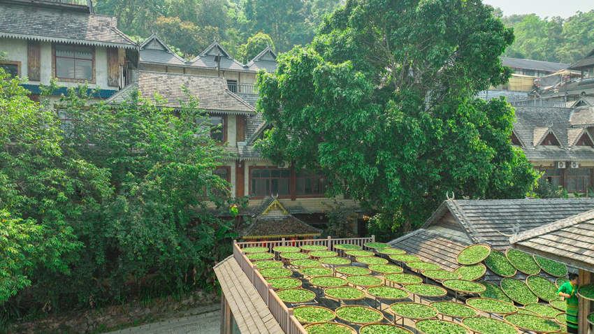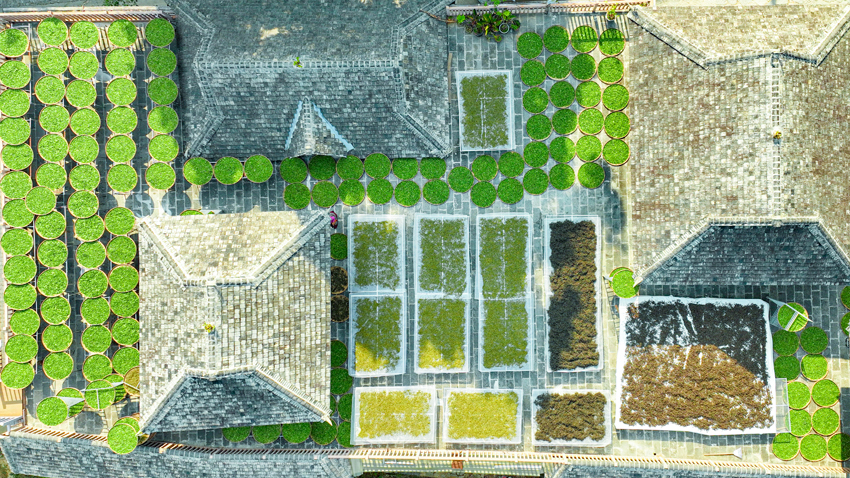 Сушка чая на крышах — это не просто старинный обычай: кровля обеспечивает листу обилие солнечного света, а зазор между подносом и черепицей создает естественную вентиляцию и защищает от почвенной влаги, сохраняя неповторимый горный аромат.