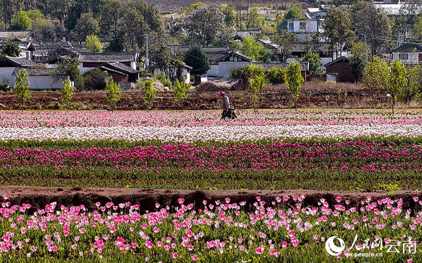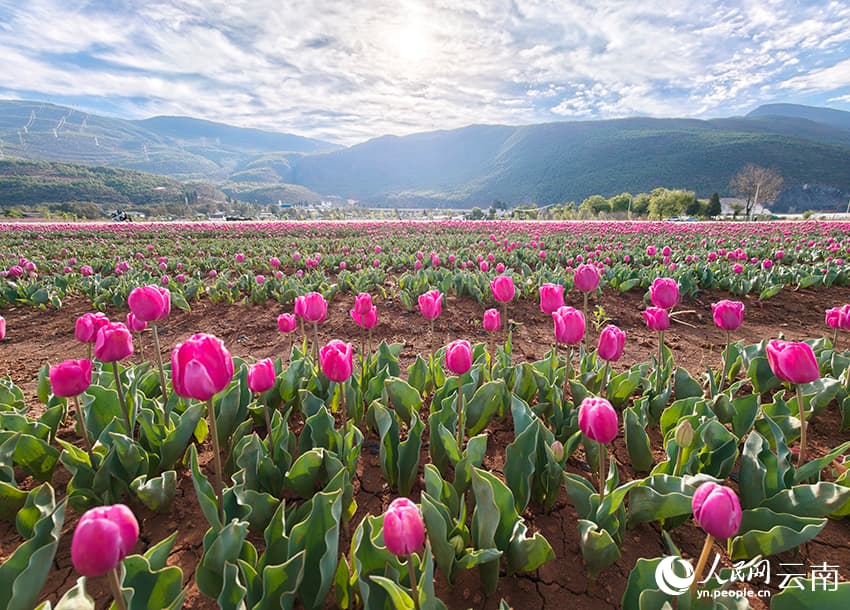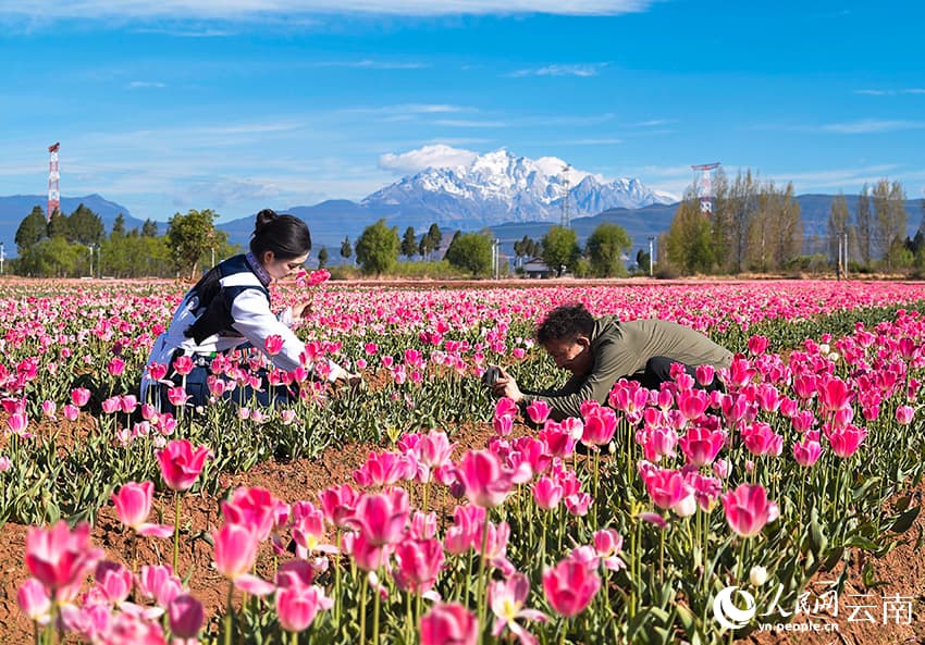 16 апреля, «Жэньминь жибао» онлайн -- В разгар весны в туристическом парке «Сыцзи хуакай» в городе Лицзян провинции Юньнань /Юго-Западный Китай/ зацвели более 16 млн тюльпанов на площади свыше 200 му /13,33 га/. Красные, розовые, белые и фиолетовые цветы сливаются в пестрый ковер, который, кажется, простирается до самого горизонта. Яркие краски цветущих полей контрастируют с белоснежными вершинами гор Юйлун, создавая завораживающую картину. Об этом сообщает сайт «Хуаньцюван».-0-