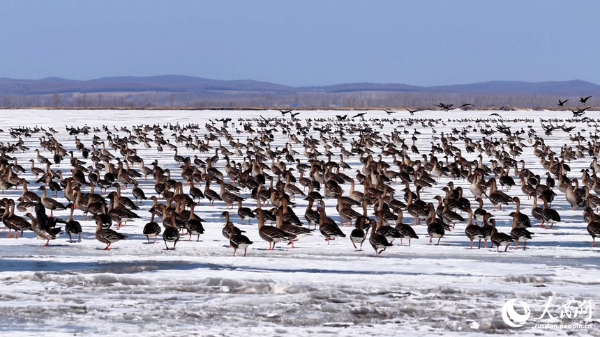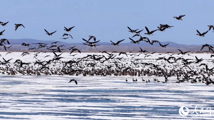 17 апреля, «Жэньминь жибао» онлайн -- Недавно на озере Ханка /провинция Хэйлунцзян, Северо-Восточный Китай/, расположенном на границе Китая и России, наблюдался пик весенней миграции перелётных птиц.