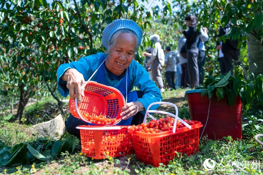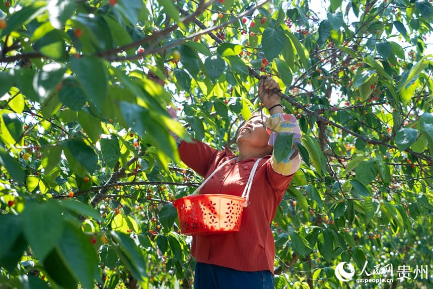 17 апреля, «Жэньминь жибао» онлайн -- В Чжэньнин-Буи-Мяоском автономном уезде города Аньшунь провинции Гуйчжоу наступил пик сбора урожая вишни.