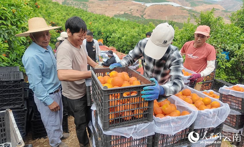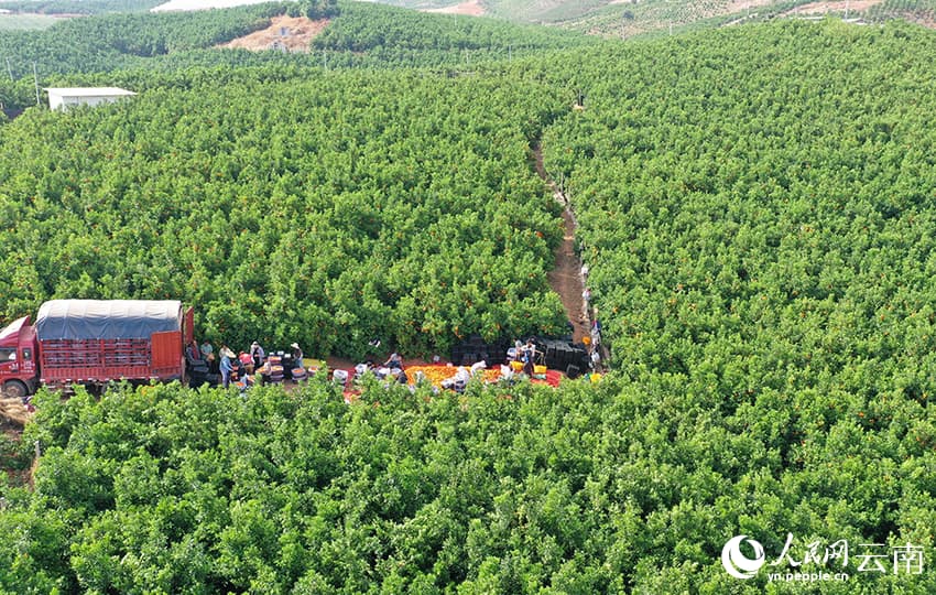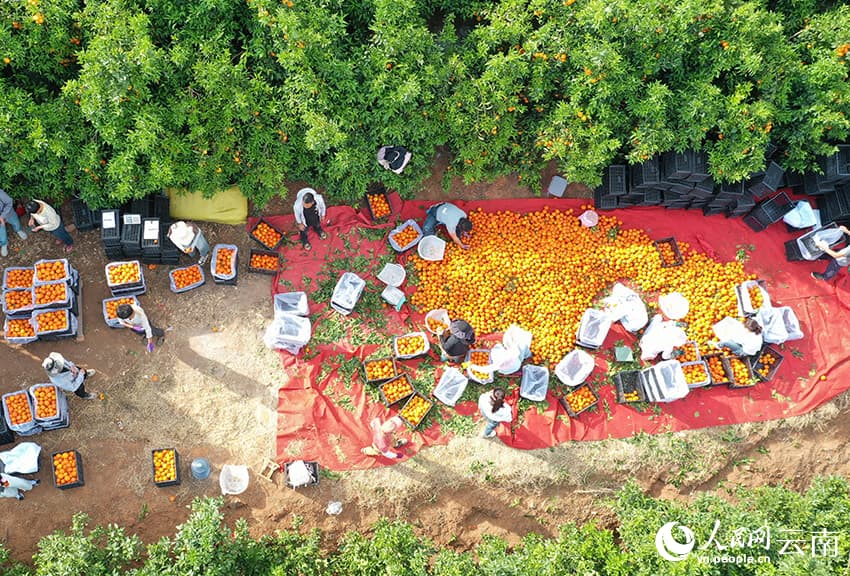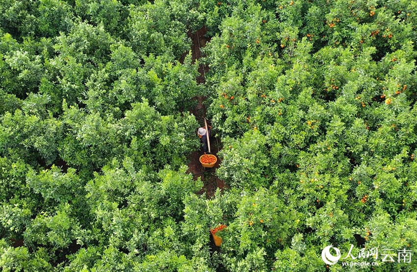 29 апреля, «Жэньминь жибао» онлайн -- В конце весны в долине реки Цзиньшацзян в уезде Биньчуань города Дали /провинция Юньнань, Юго-Западный Китай/ наступает сезон сбора позднеспелых мандаринов сорта «вогань». На обширных плантациях золотистые плоды усыпают ветви деревьев, а фермеры активно трудятся, собирая урожай.