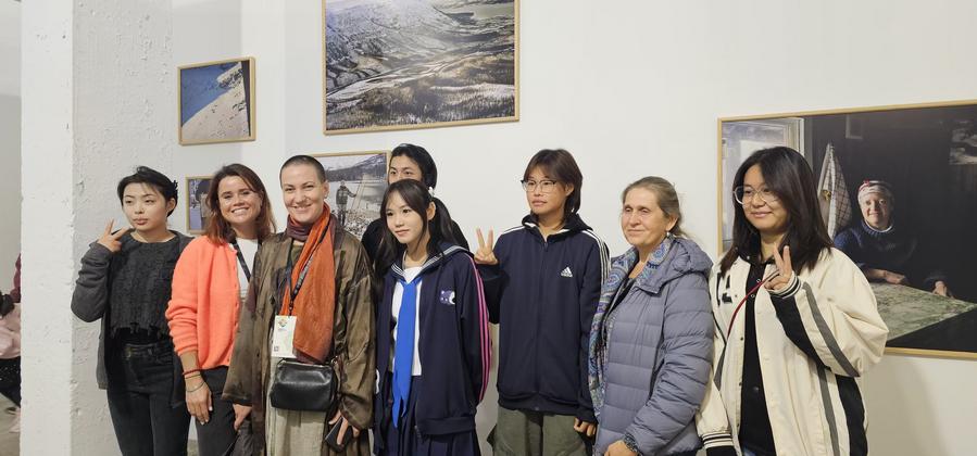 19 сентября 2025 года, российские фотографы Ирина Чмырева /третья слева/, Мария Груздева /вторая слева/ и Светлана Борозенцева /вторая справа/ с посетителями фотовыставки в ходе 25-го Пинъяоского международного фестиваля фотографии в одноименном городке провинции Шаньси /Северный Китай/. /Фото: Синьхуа/ |