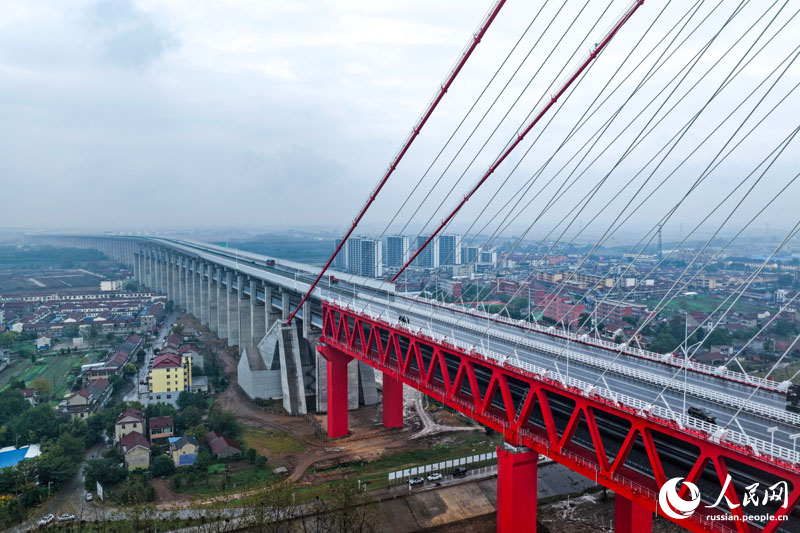 7 ноября, «Жэньминь жибао» онлайн -- 6 ноября официально началось движение по железнодорожно-автомобильному мосту через реку Янцзы в Тунлине провинции Аньхой. Это первый в мире двухъярусный вантовый и подвесной мост двойного назначения. Его длина составляет 11,88 км. Верхний уровень моста представляет собой шестиполосное шоссе для автотранспорта, а нижний предназначен для высокоскоростных и обычных поездов.