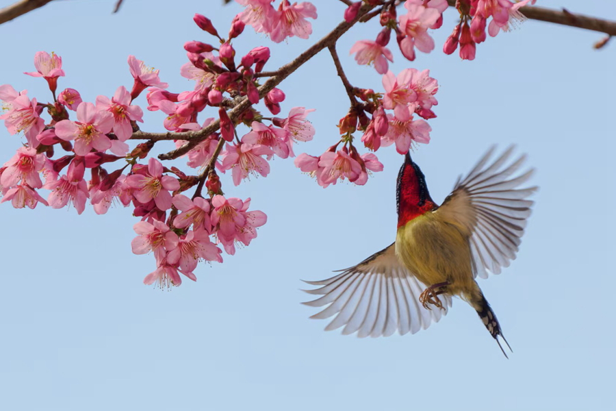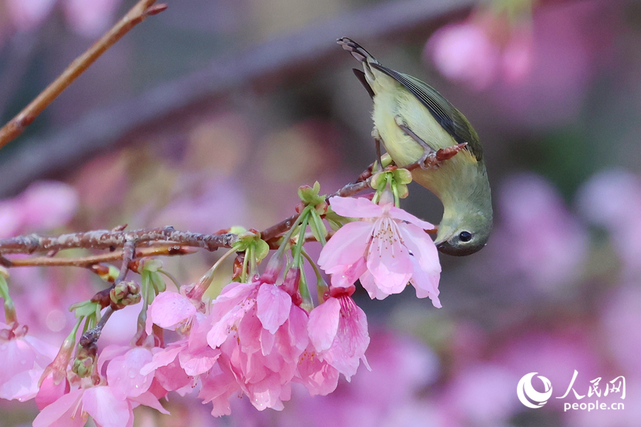 27 января, «Жэньминь жибао» онлайн -- В последние дни в национальном лесном парке Ляньхуа города Сямэнь провинции Фуцзянь /Юго-Восточный Китай/ распускаются целые массивы вишни. Птицы, привлеченные красотой, слетаются на ветки и наполняют все вокруг мелодичным щебетом. Эта картина создает ощущение гармонии и умиротворения, сообщает сайт «Хуаньцюван».-0-