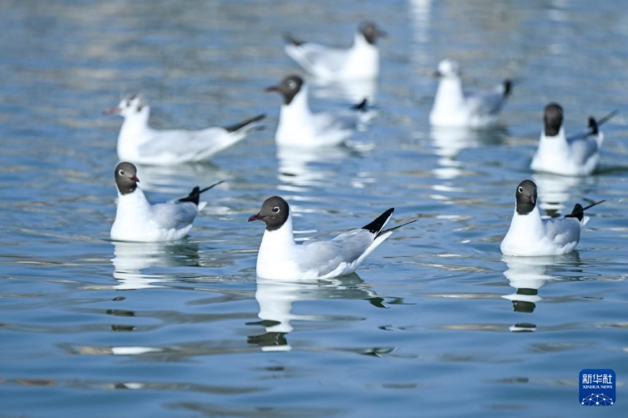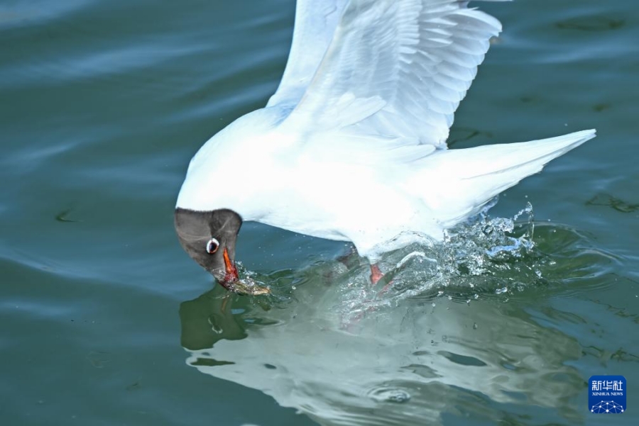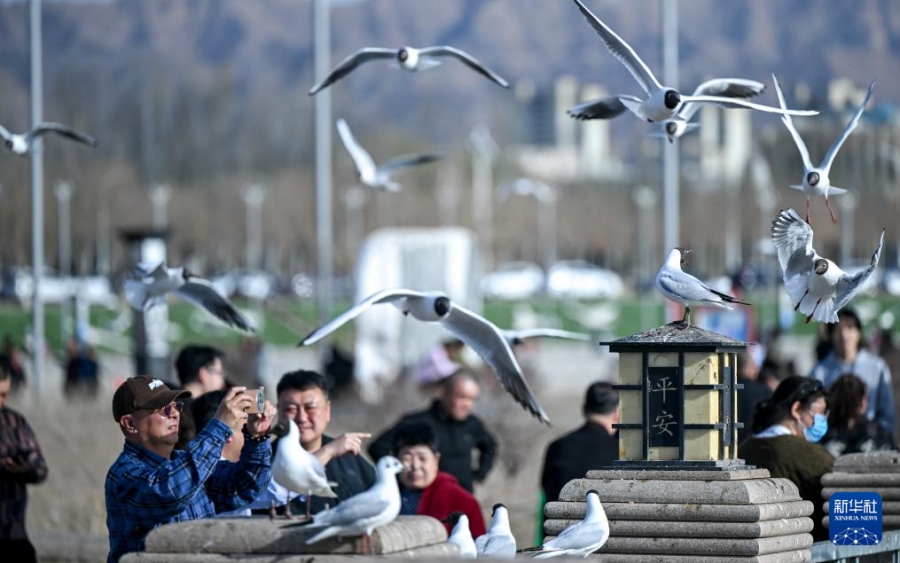 26 марта, «Жэньминь жибао» онлайн -- На днях с приходом тепла на озеро Ухайху в городе Ухай (АР Внутренняя Монголия, Северный Китай) прилетели озерные чайки. Их изящный полет на фоне пустыни, водной глади и города создает уникальный весенний пейзаж, привлекая множество туристов, которые спешат сделать живописные кадры.-0-