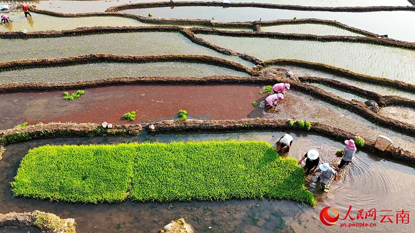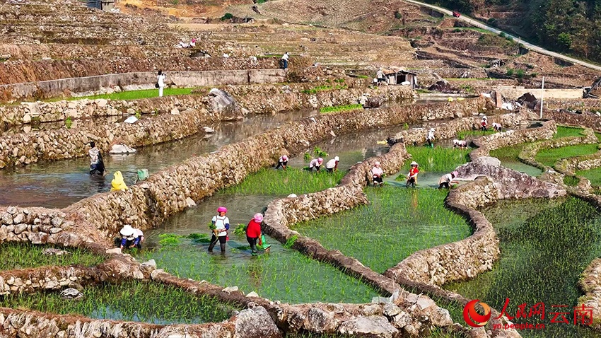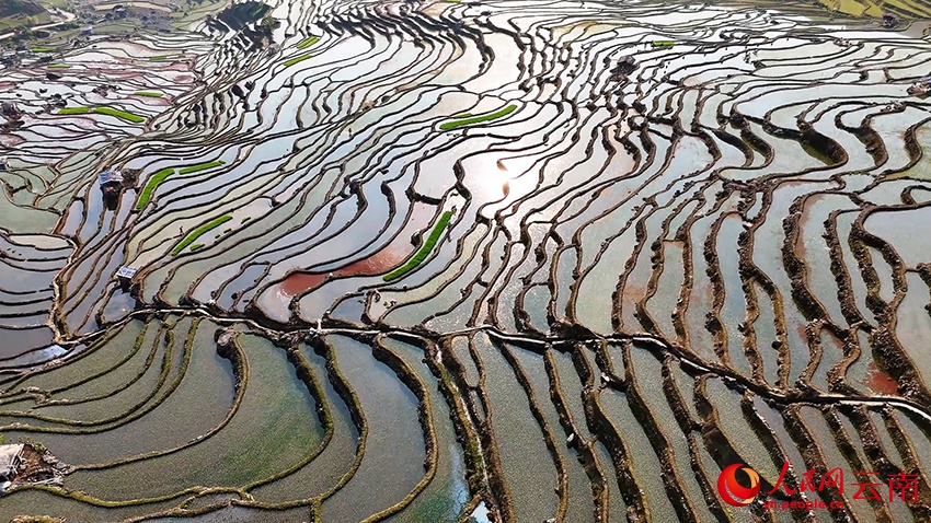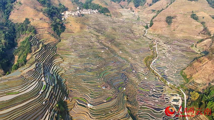 3 апреля, «Жэньминь жибао» онлайн -- Под теплым весенним солнцем террасные поля Лагу в волости Саньмэн уезда Люйчунь (провинция Юньнань, Юго-Западный Китай) сверкают зеркальной гладью воды, напоминая величественный «отпечаток пальца» самой земли. Сельские жители спешат насладиться погожими днями: боронят залитые чеки, вносят удобрения и пересаживают рисовую рассаду. Повсюду кипит напряженная весенняя страда. Об этом сообщает сайт «Хуаньцюван».-0-